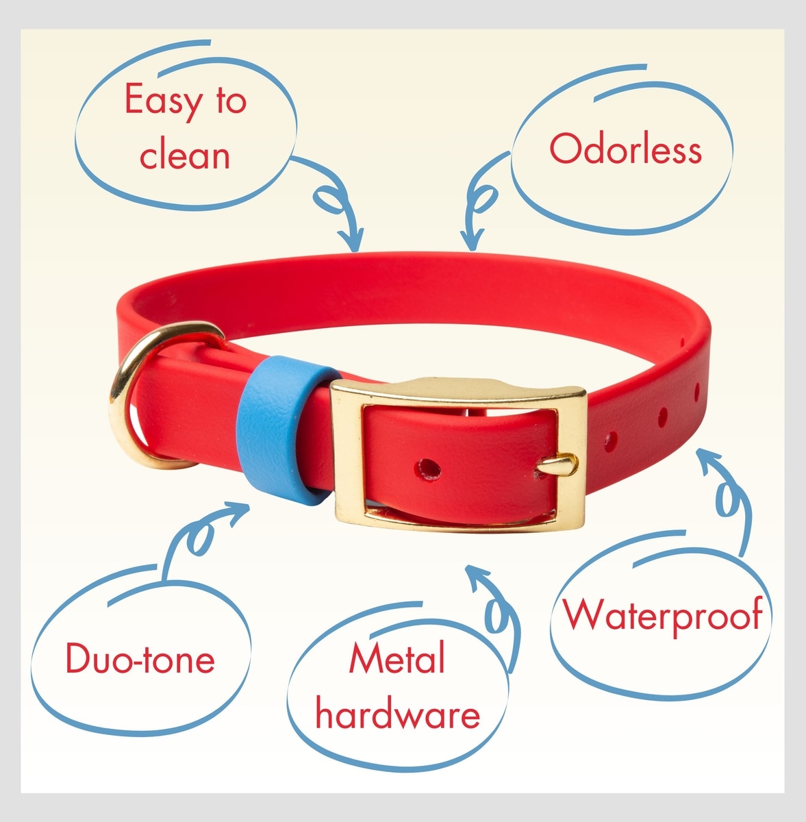 PawFurEver's Waterproof & Odorless Dog Collar, Red & Blue, Small