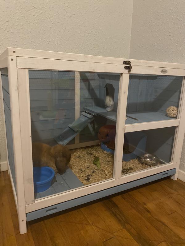 PawHut 2 Story Indoor Wooden Rabbit Hutch, Light Blue
