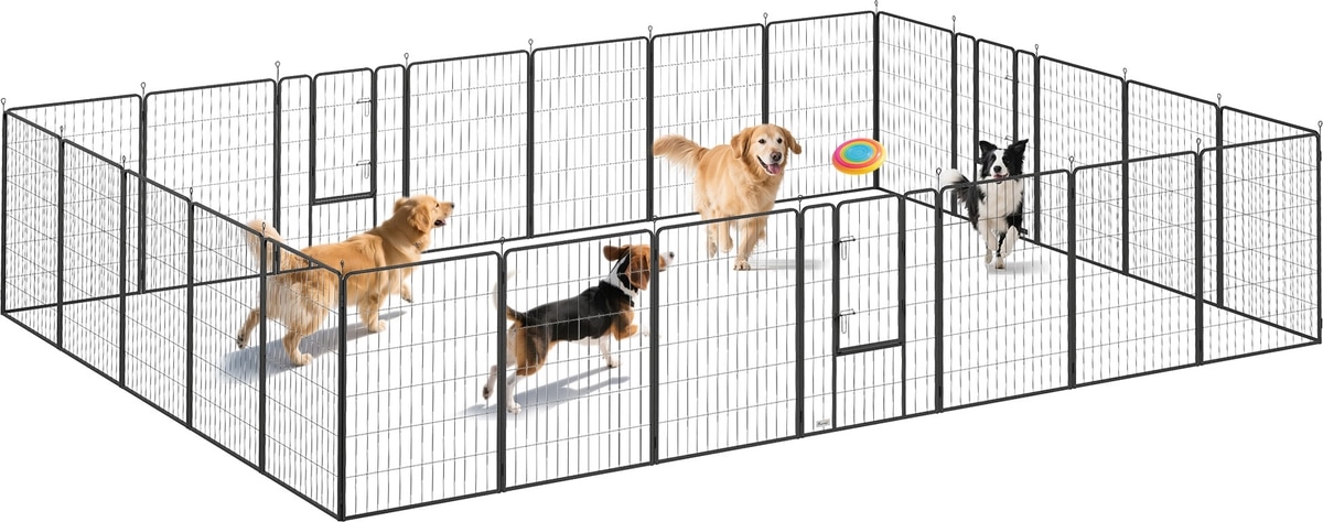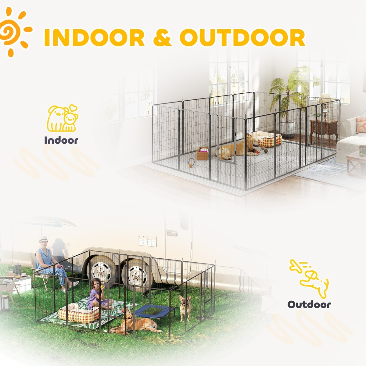 PawHut 24 Panels DIY Shape Exercise Fence Dog Playpen with Lockable Door, Black, 252 x 126 x 44.5-in