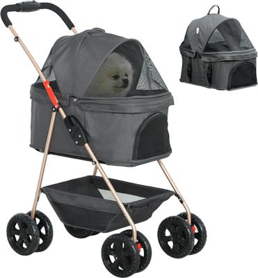 PawHut 3 in 1 4 Wheels Stroller with Detachable Carrier with Storage Basket for Small Dogs & Cats, Gray, 29.9 x 19.7 x 40.2-in