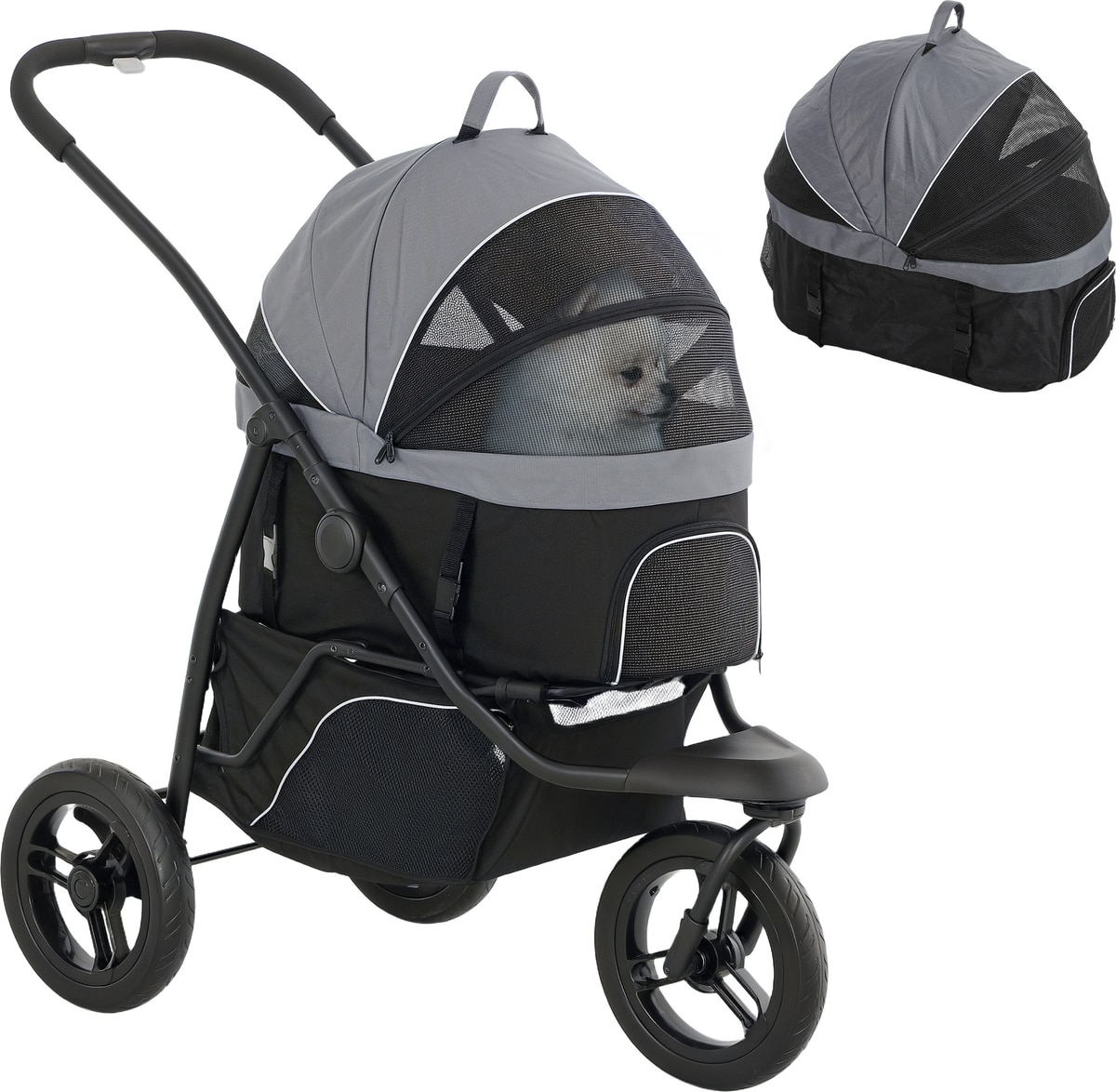 This 3-in-1 pet stroller adapts to your lifestyle—use it as a jogger, a removable cabin for a car seat, or a convenient carry bag.