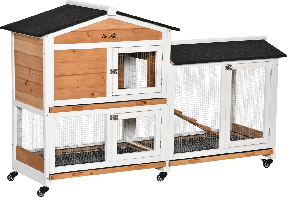 PawHut 62-in Wooden Rabbit Hutch with Wheels, Natural Wood