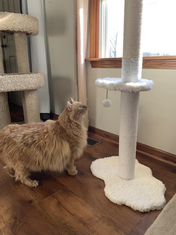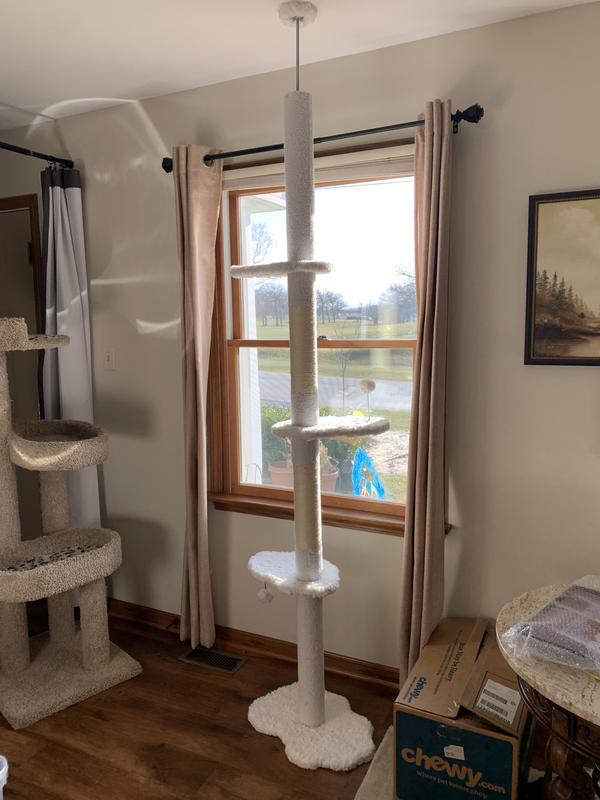 PawHut 8.4-ft Fleece Adjustable Height Floor-to-Ceiling Cat Tree, White