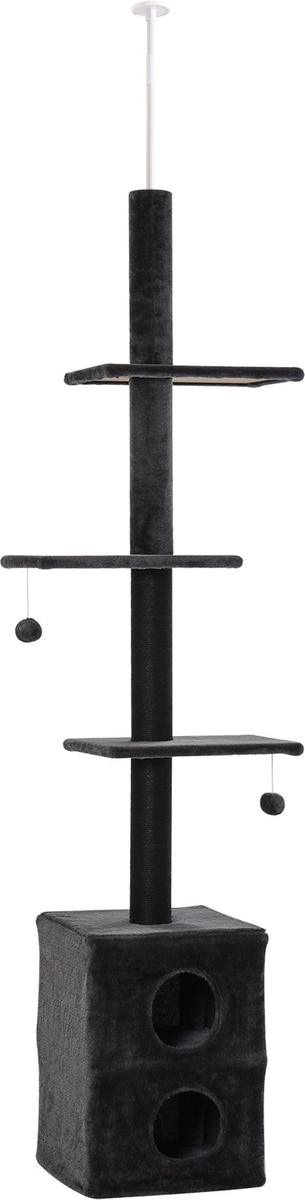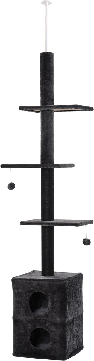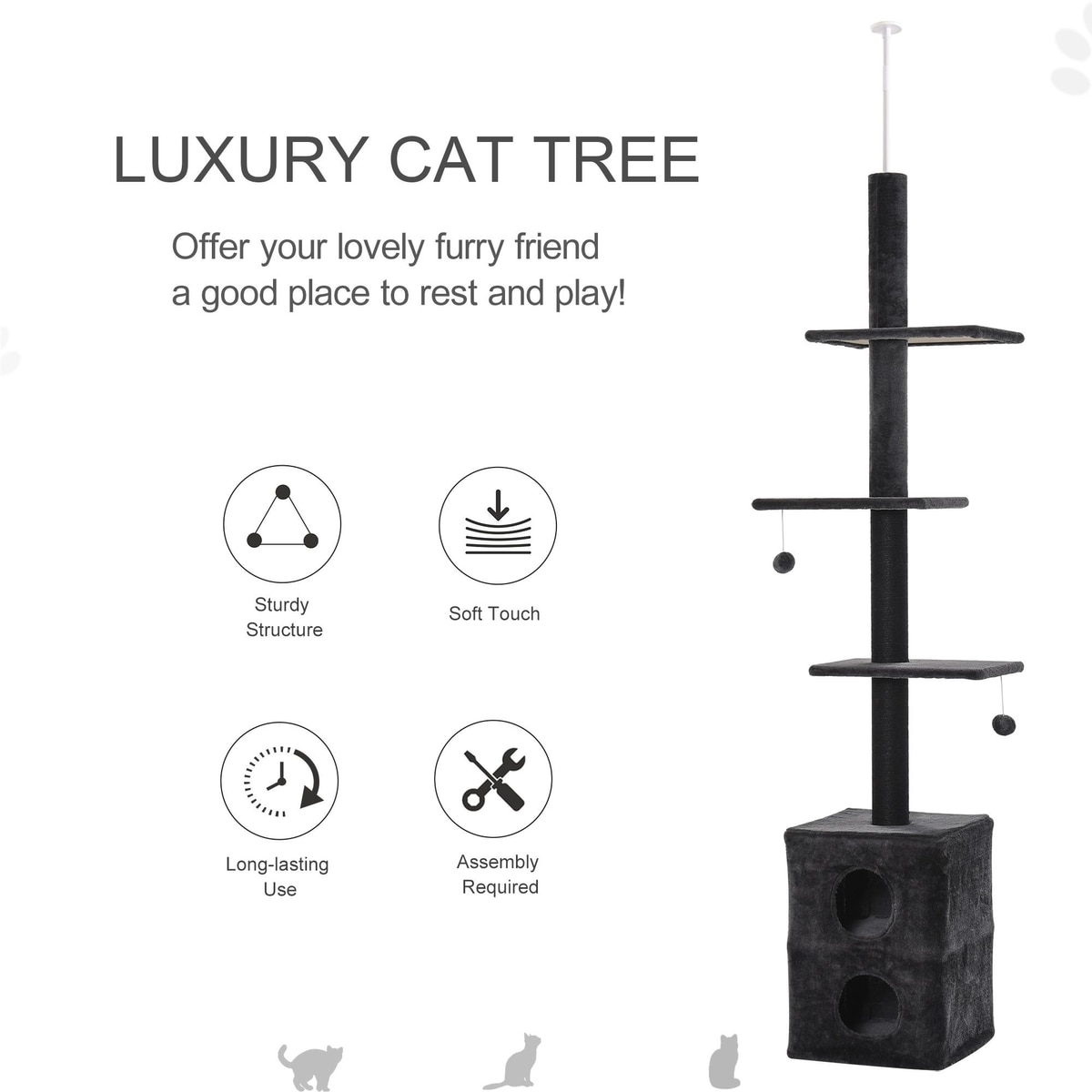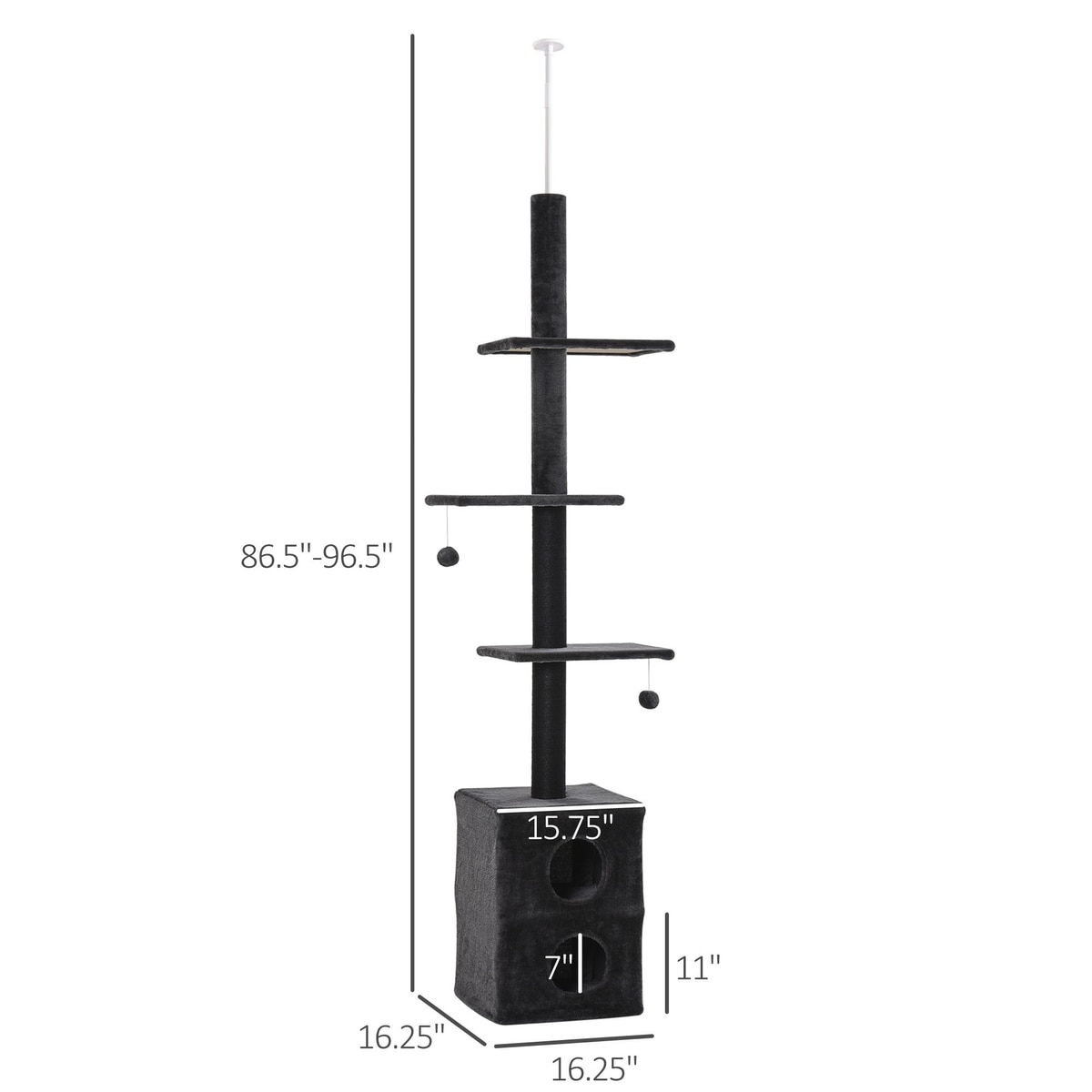 PawHut 96.5-in Adjustable Condo with Jute Scratching Post & Dangling Ball Cat Tree, Grey