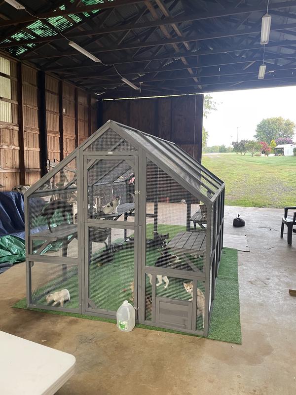 PawHut Catio Outdoor Wooden Multi-Cat House, Gray