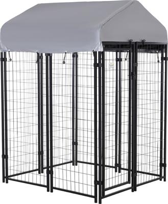PawHut Dog Outdoor Kennel & Play Pen, Grey, 4 x 4 x 6-ft