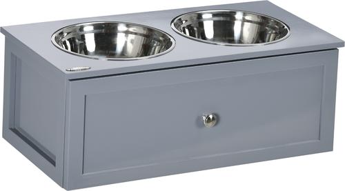 PawHut Elevated Large-Dog Bowls with Storage, Gray