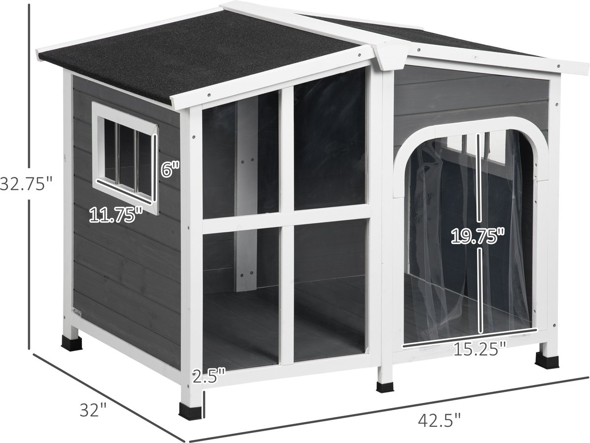 PawHut Giant Window Wooden Indoor/Outdoor Dog House, Dark Gray