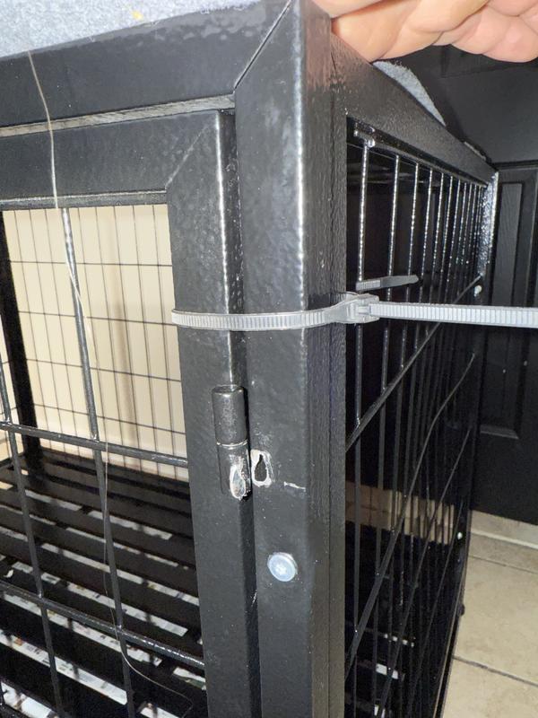 In less then a month the hing on door is broken I have zip ties holding it together this literally happen from normal ware. My pup is supper calm and had been crate trained