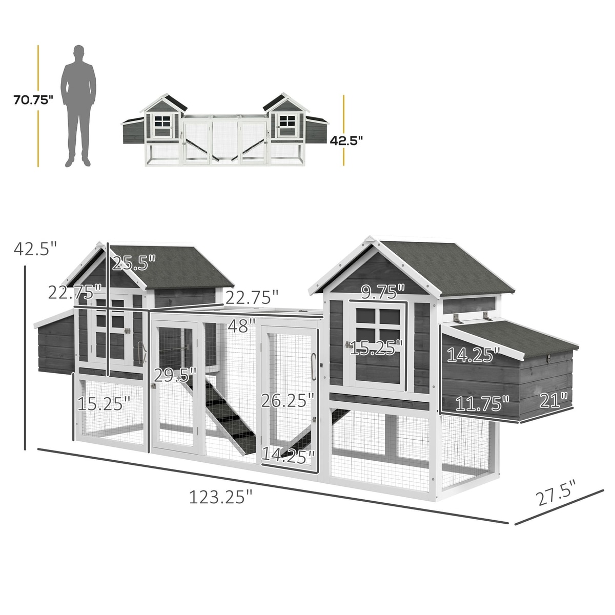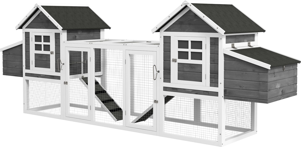 PawHut Hutch Poultry Cage Backyard Wooden Dual with Outdoor Ramps & Nesting Boxes Chicken Coop, White