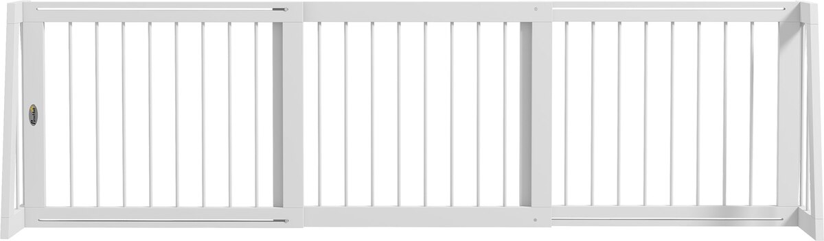 PawHut Indoor Freestanding Wooden Dog Gate Extension with 28 to 75-in Retractable Length, Support Feet & Non-Slip Mats, 74.8 × 15.2 × 22-in, White
