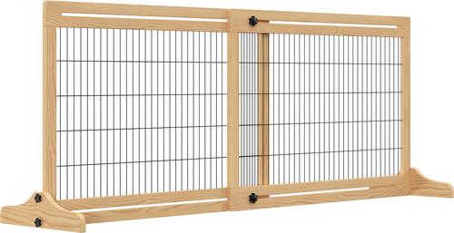 PawHut Indoor Slide-Adjust Freestanding Retractable Wooden Dog Gate Extension, Natural Wood, 70.9 x 14.25 x 27.25