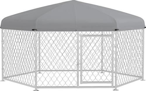 - Made with heavy-duty galvanized steel, this kennel is designed for durability and longevity.