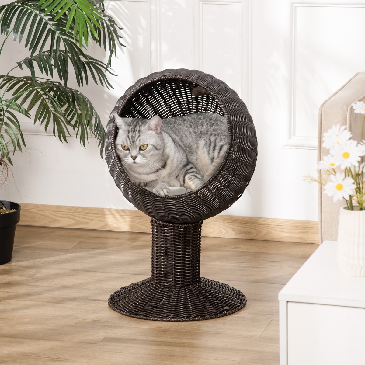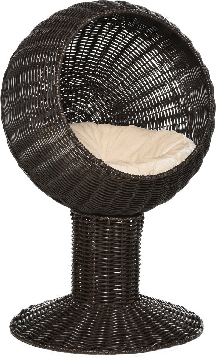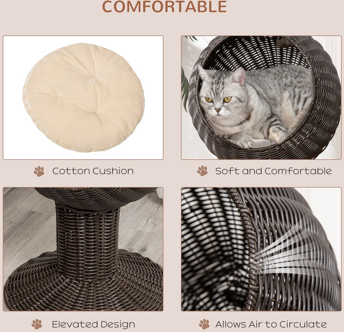 PawHut Natural Mat Grass Woven Cat House, Coffee