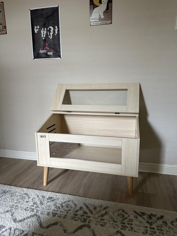 This is a very cute enclosure. BUT. It was very hard to put together, the fasteners had an odd plastic piece that was not on any illustration, it took trial and error to realize it was a spacer that seems like it should have been pre installed in the hole. Instead you havr to pound the whole assembly in with a hammer or mallet which flaked off some of the seemingly very thin veneer. And as I was putting it together I was like “veneer” in a potentially wet environment? Not a great choice. It is going to bubble the moment any water spills. Last I checked even desert reptiles need a water source even if you are only misting them daily. A tropical setup would ruin this thing FAST, just in my opinion. Snakes? Decently mobile lizards? Nope. The lif stays down only by gravity and both of the above would easily lift it enough to either escape or crush themselves. There is no way to lock it either! So what animal is this FOR? Rodents would easily chew through the flimsy almost cardboard piece at the back. This seems like a staging prop for a house showing vs a real livable habitat for a reptile. My cats however found it fun to lay inside of!