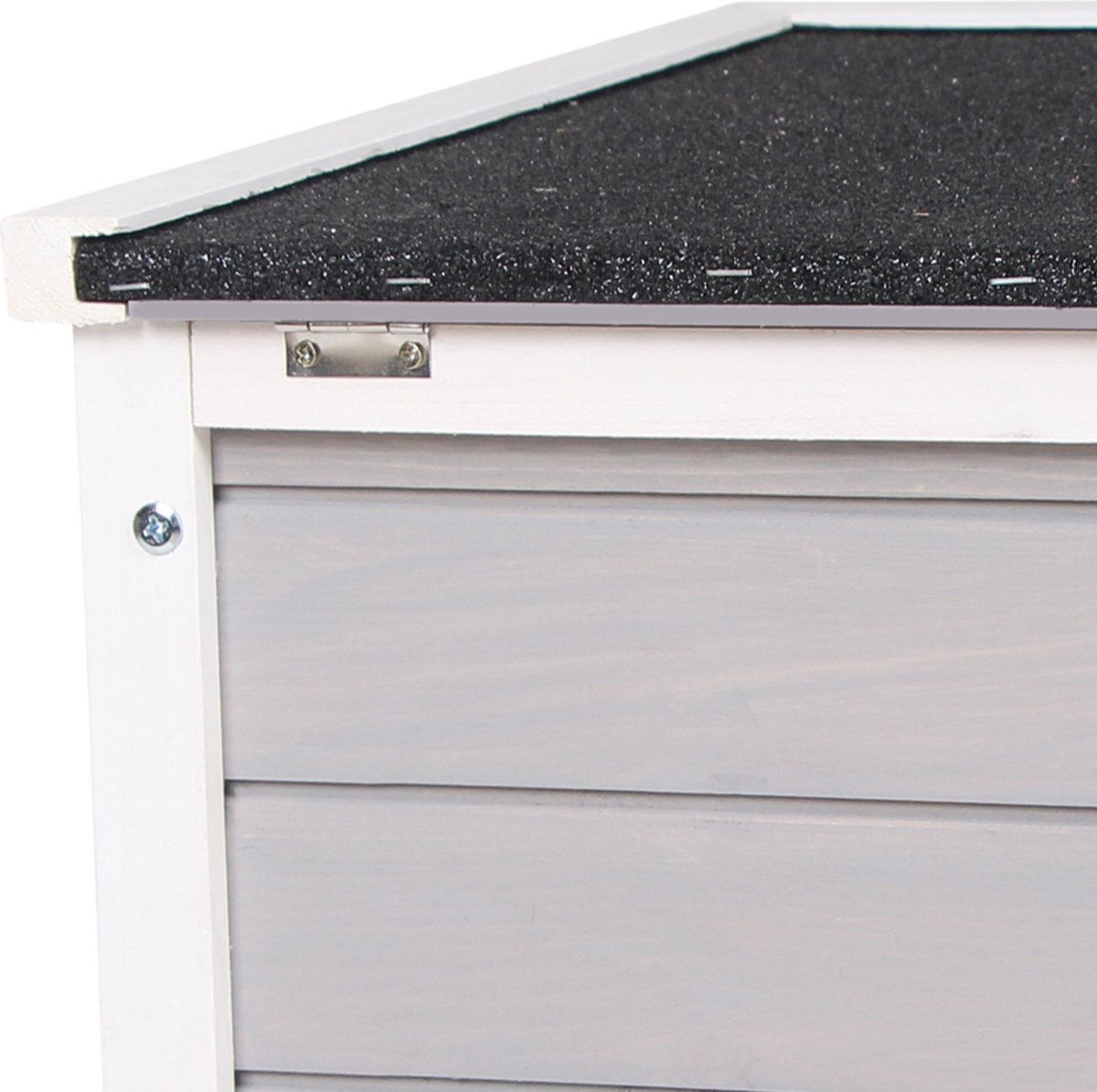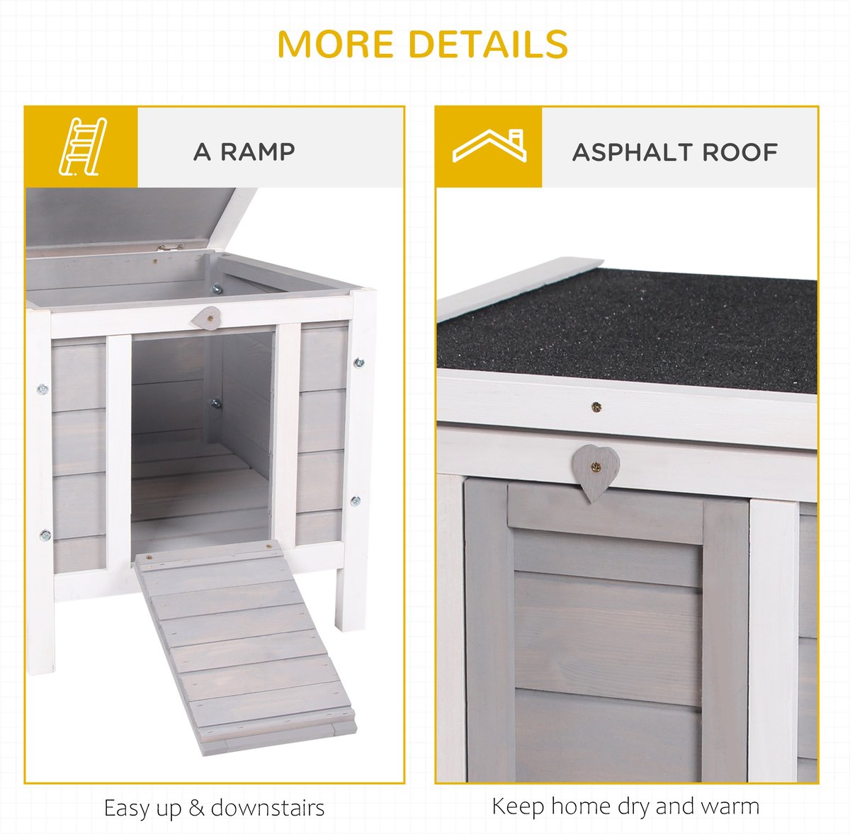 PawHut Wooden Rabbit Hutch with Openable & Waterproof Roof, Grey