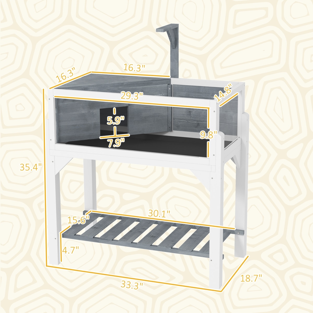 PawHut Wooden Tortoise Habitat with Storage Shelf, Gray