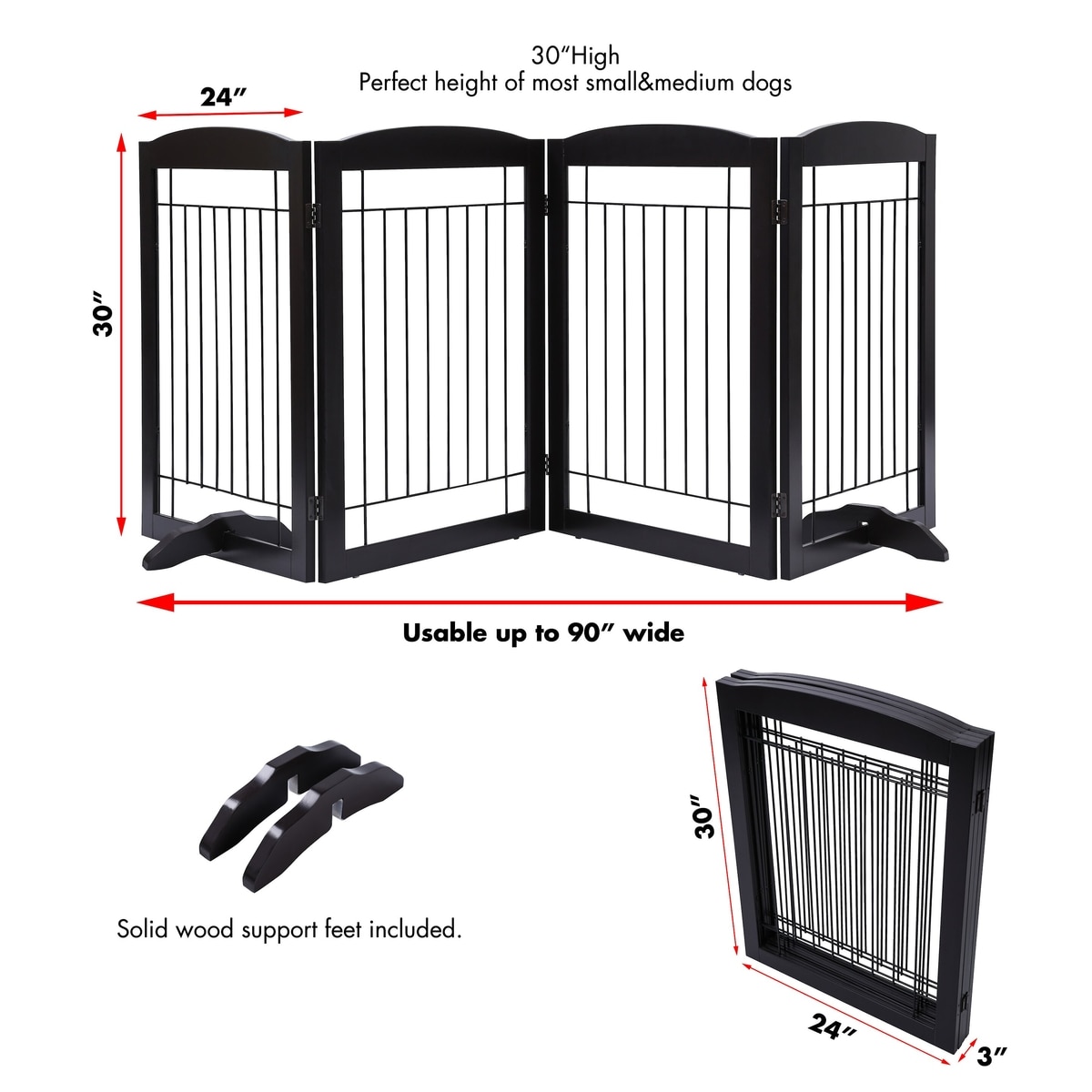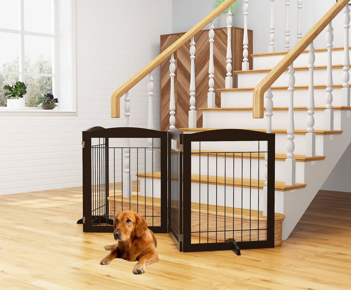 Pawland Freestanding Foldable Wire Dog Gate, Espresso, 4 Panel