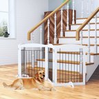 I have ordered these Pawland gates in the past from Chewy and thought they were the best gates ever. However, this time when I received the 6 panel gate, it did "not" come with the support feet that fit over the bottom as described and pictured in the website that are on all my gates I currently own. Instead, it came with feet (that a few of the wood feet pieces were chipped) that you needed to screw in to the gate. There were no holes for these to fit into so nothing made sense. The reason I like the feet that just slip over is because they are easily removable and you can store the gate flat when not in use. Needless to say, this gate does not work for me; however, the customer service at Chewy was wonderful as always and took care of this for me!