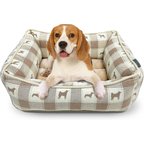 Paws & Decor All Over Plaid Printed Cuddler Bolster Dog & Cat Bed, Taupe, Medium