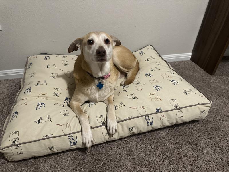 Both of my dogs love this bed! The pattern is so cute, and it's a great size! It also seems to be very comfortable for them. This bed will look cute in your home and make your dog happy – highly recommend!