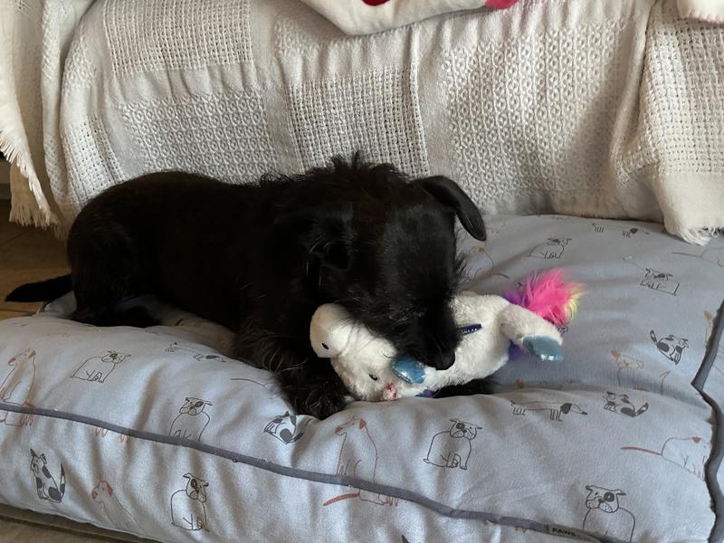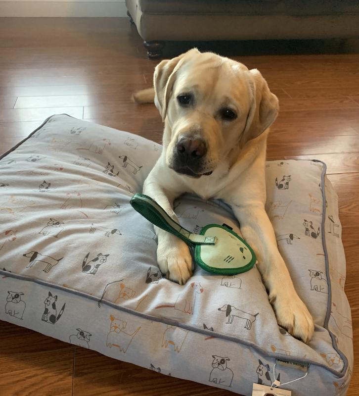 This bed is very cute and provides good cushion. I couldn’t even get the tags off of it before our yiunget labrador claimed it. The cover unzips for easy washin