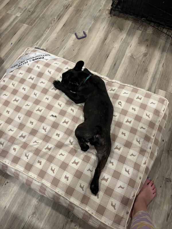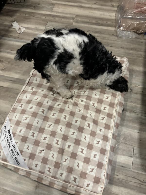 This bed is a hit! Comfortable for both small and large dogs. Easy to remove the cover for washing. Not too heavy so it is easy to pick up and move into other rooms. Definitely would recommend this product!