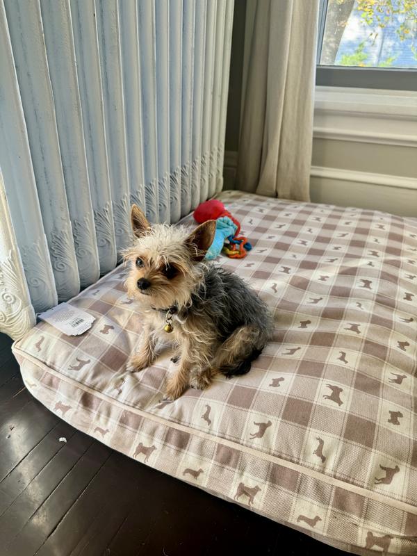 This bed has quickly become our dogs' favorite spot in the house! We have a 15 year old Australian Shepherd and a 5 month old Standard Poodle puppy, and the medium-sized bed is just perfect for them to share the bed and snuggle comfortably. When the bed arrived, it came in a compact roll, which made me a little skeptical initially because it arrived flat and thin. However, after a few minutes of shaking the bed and fluffing it up, it became a plush cushion. I also appreciate that the cover can be easily removed for cleaning.