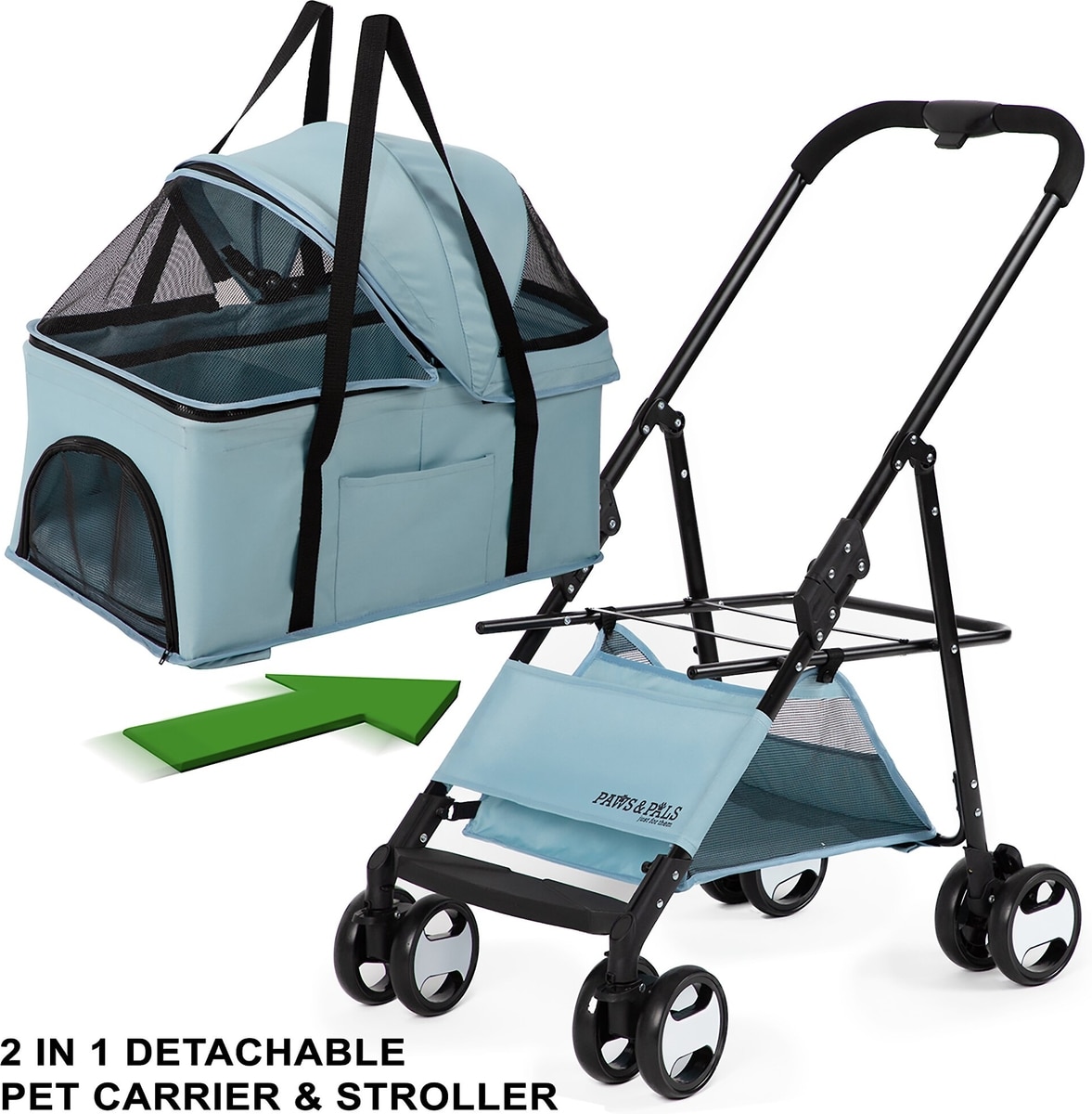 Paws & Pals 2-in-1 Detachable Dog & Cat Stroller & Carrier, Blue