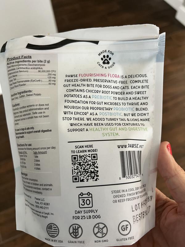 My dog absolutely loves Pawse Flourishing Flora! I love that they’re made with all-natural, limited ingredients and no preservatives, plus they have pre-, pro-, and postbiotics for full gut health support. The freeze-dried texture makes them super easy to give, and my pup thinks they’re a treat—which makes my life a lot easier. Highly recommend! 🐾