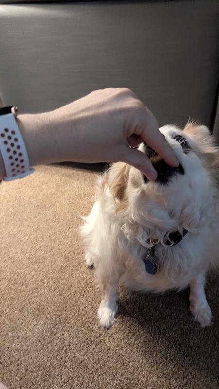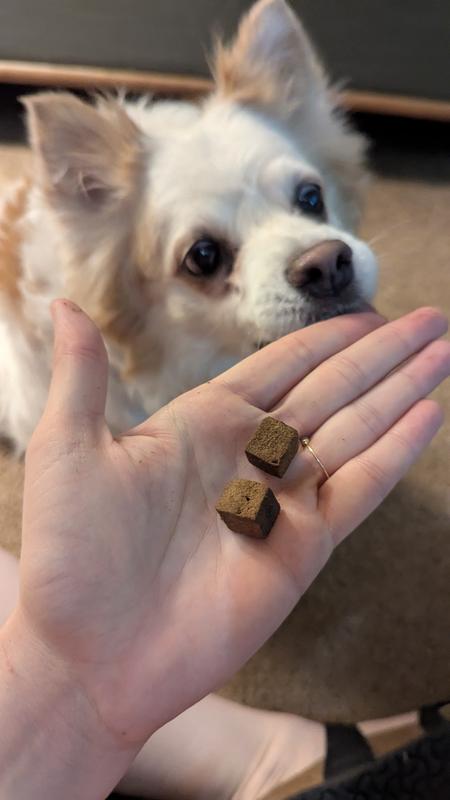 My 8 year old mixed terrier Scout has a limited diet. She has a sensitive stomach and GERD so I have to be careful about what I give her. She is currently on a joint supplement, but I have been hesitant to give her anything else. The limited ingredients in this Pawse product made me much more inclined to trust it. The bites are light and airy and have a neutral smell. I was not sure if the bites would be palatable enough for Scout, however she surprised me. She gave them a few sniffs and then quickly ate both from my hand. She looks forward to having two of the bites every morning with her breakfast. We have had no negative effects and Scout seems to enjoy them, so these are a buy for me!