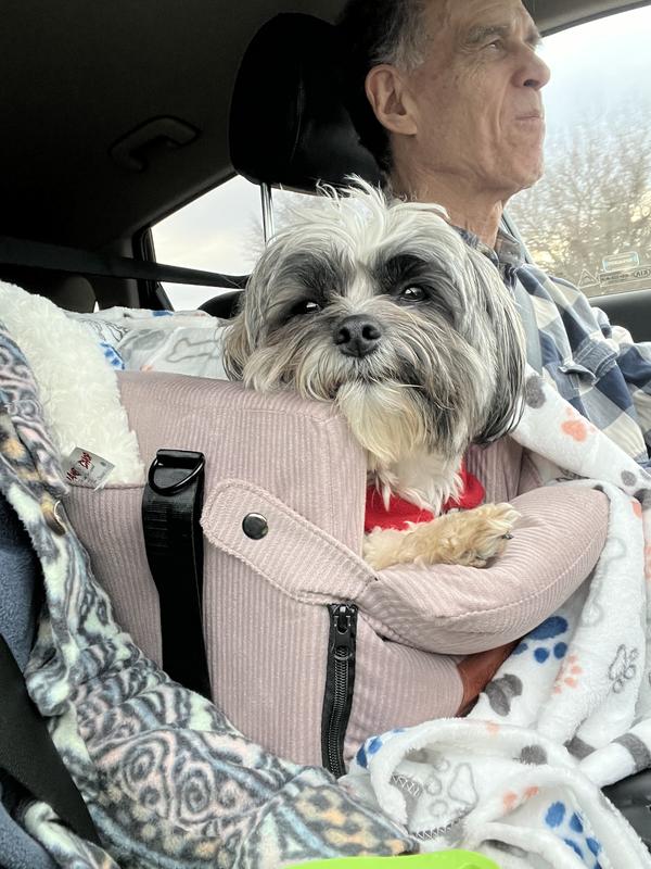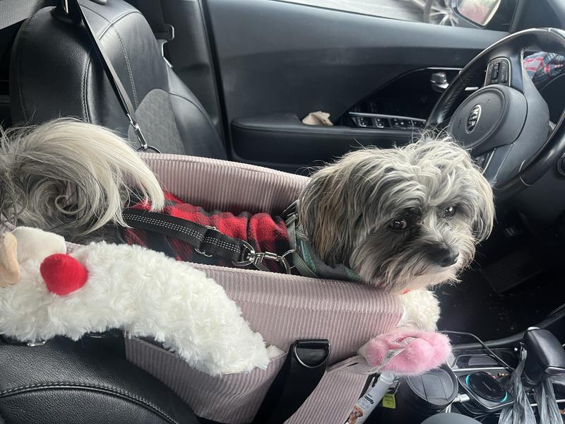 My 5lb maltipoo is much safer now that she is nestled in a comfy spot up high where she can see. Love the safety straps to anchor to the seats and the safety