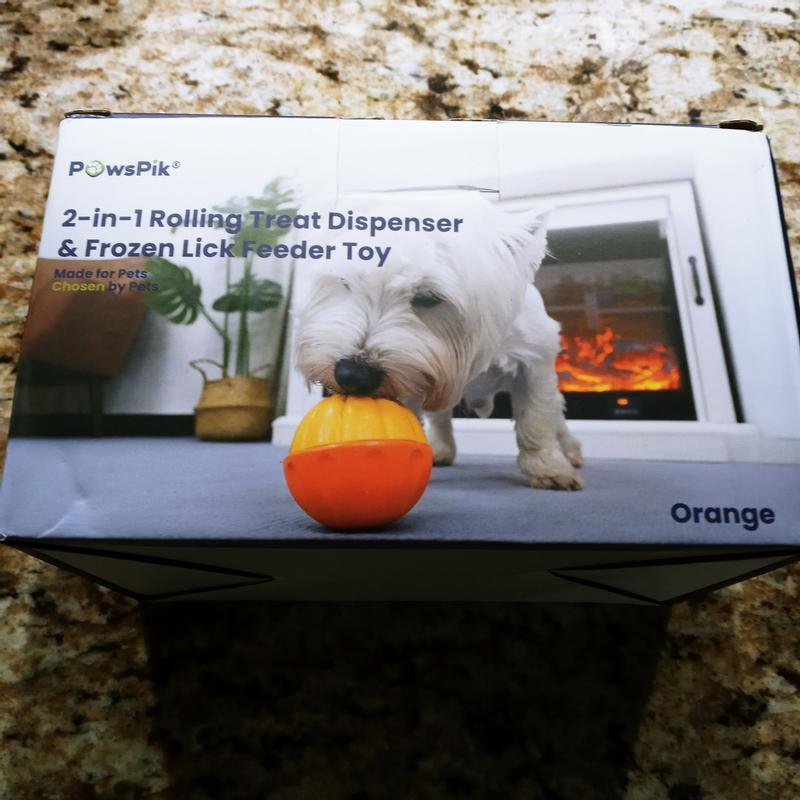 PawsPik 2-in-1 Rolling Treat Dispenser & Frozen Lick Enrichment Dog Toy, Orange, Small
