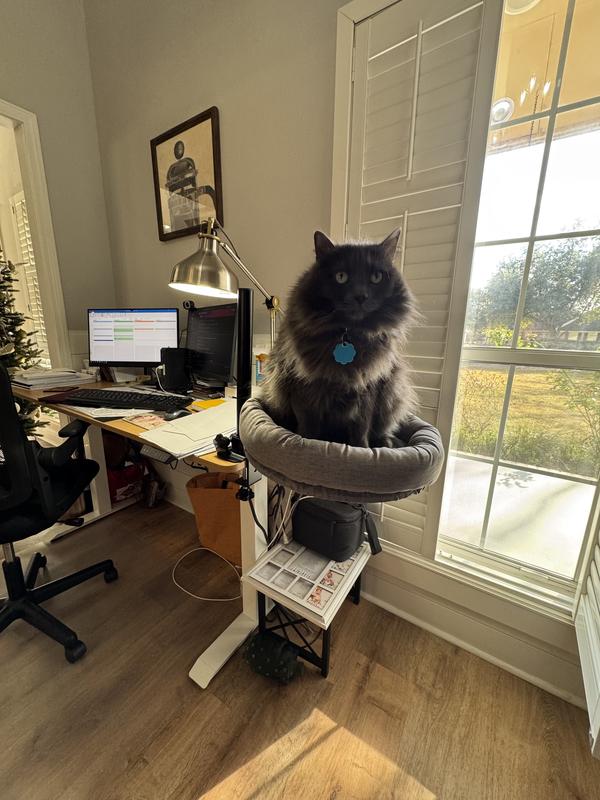 This is such a fantastic product! It’s super sturdy on my desk, easy for my kitty to get in and out of, and she loves using it to watch birds while staying off my