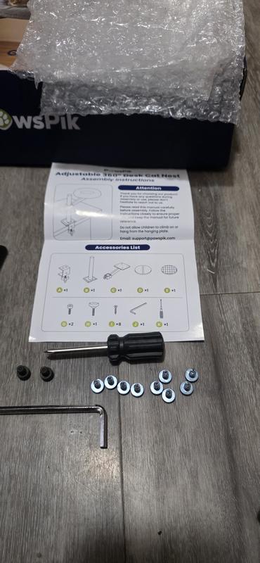 What a great product. At first I was a little skeptical that I even needed this for my cats but after having it up a few days and seeing them actually using it, I am sold. My son put it together and he had one small issues the some holes not lining up but after using the power drill it worked out. I was worried it would be steady enough but it’s pretty solid and doesn’t budge.