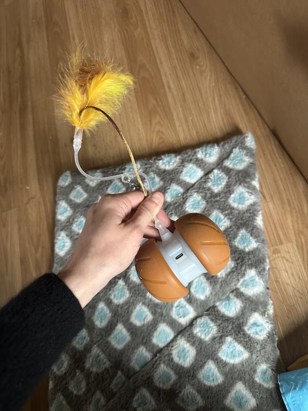PawsPik Feather Tail Rechargeable Spinner Chasers Cat Toy, Orange