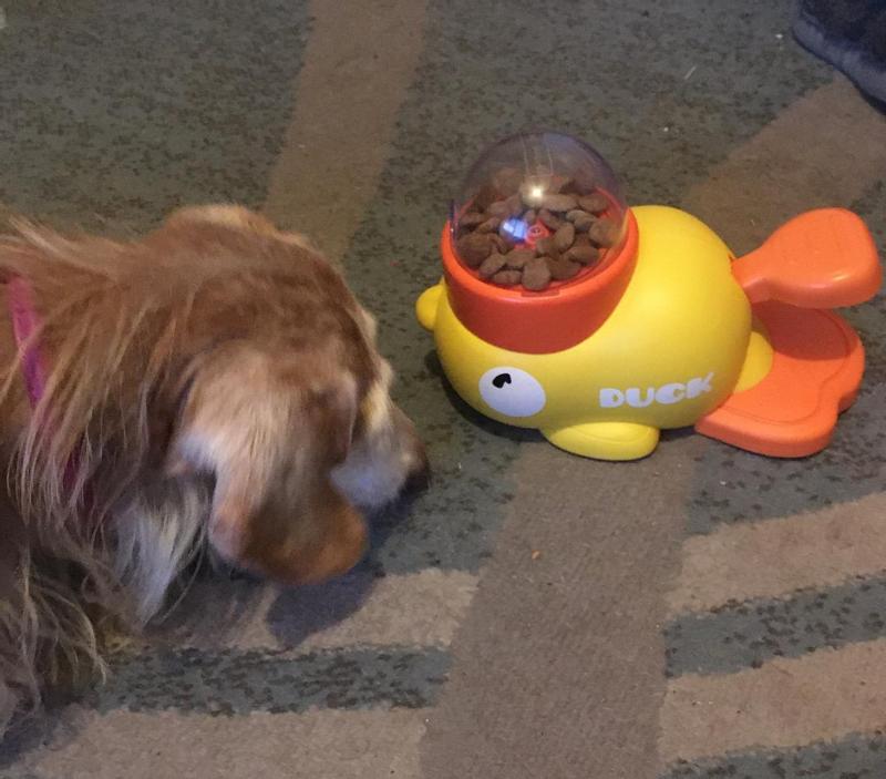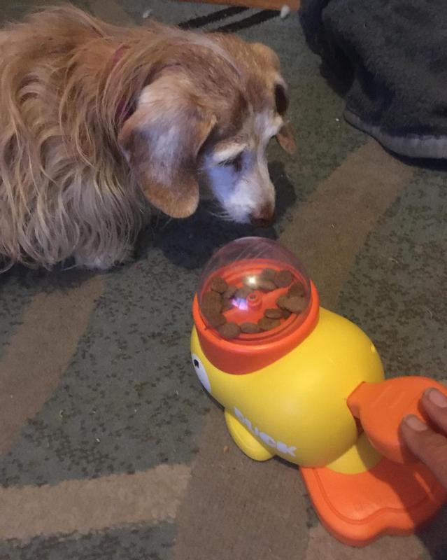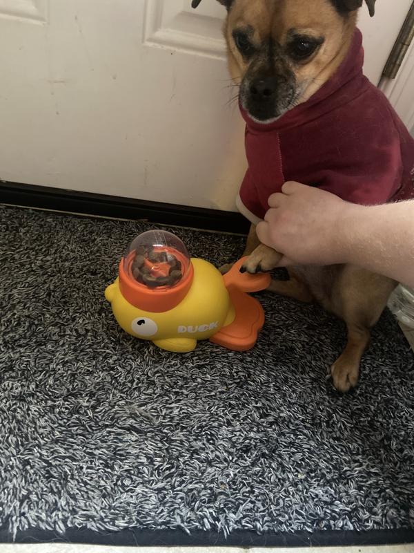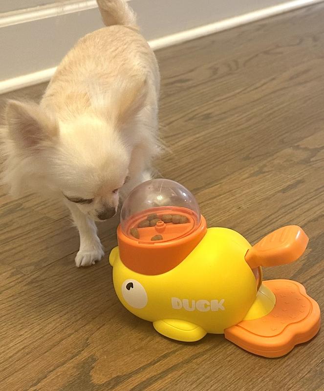 PawsPik Happy Duck Interactive Dog Treat Dispenser Toy, Small, Yellow