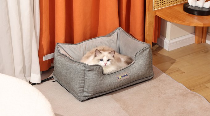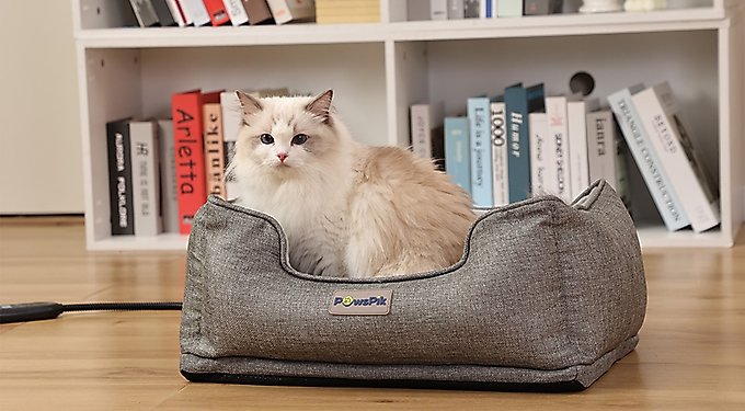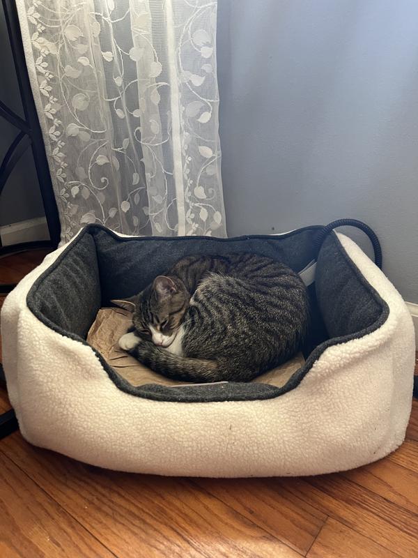 PawsPik Indoor Electric Heated Cat & Small Dog Bed, Sherpa Lined, Charcoal & Ivory, Small