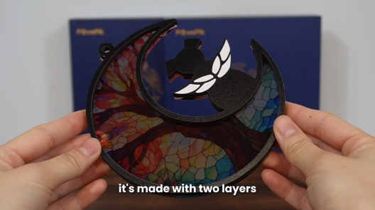 This suncatcher is beautiful and has vibrant colors, especially when the sun shines on it! It is lightweight and comes with a reasonable size hook that fits perfectly around window slash locks. Side note: package comes with a pen for you to personalize the suncatcher to your liking and to write your beloved pets name on it.