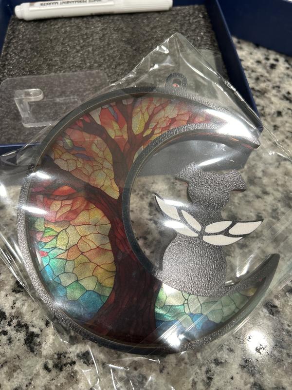 This a beautiful memorial gift for someone who has lost a beloved pet. It catches the sun gorgeously. I plan to hang it on my office window so I can look over and see a reminder of my girl. Two things to note: First, this comes with a glue pad and hook to sick to the window. I have concerns on how this would hold up on a window that gets lots of direct sunlight. I’m opting for using a suction cup instead. Second, the dog figure is very very small and you get a pen to write the dog’s name yourself. There’s not much room, so if the dog’s name is longer it either won’t fit or you’ll only be able to write their initial. Something to keep in mind.