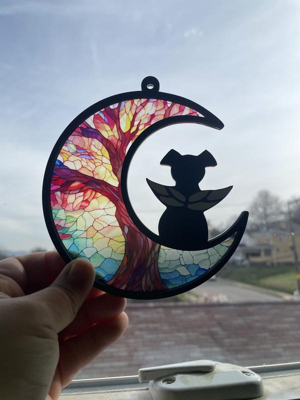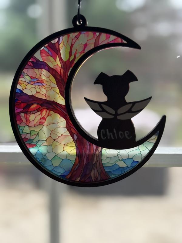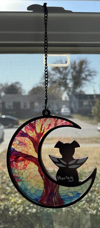 I have lost many beloved dogs throughout my long life. It is like losing a child. And, I would have loved to receive a gift like this during my mourning. This is a high-quality keepsake that looks expensive and will be a cherished reminder of a lost pet. The thick plexiglass moon is beautiful in the sunlight. The chain is easy to attach and there is a clear stick-on hook that attaches seamlessly to the window. (No tools or hardware needed!) Plus, there is a beautiful card that perfectly expresses your sympathy. I personalized my dog memorial and signed the card. I wrapped it up, and I mailed it to my Aunt who just lost her 10-year old Golden Retriever. She has been heartbroken and I know this will touch her heart. I am so glad that PawsPik and Chewy offer this affordable, long-lasting memorial for people dealing with the death of a pet. And, considering the cost of greeting cards these days, this is a much more impressive way to express your sympathy for grieving family and friends. I highly recommend this! ❤️