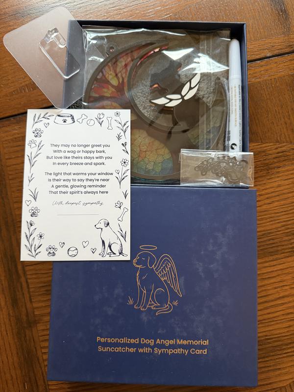 PawsPik Personalized Angel Memorial Dog Suncatcher with Sympathy Card