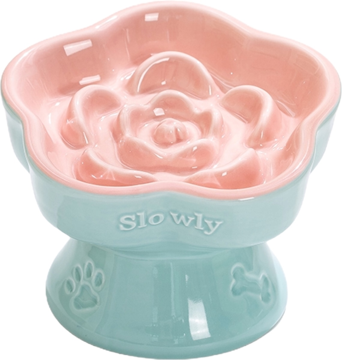 PawsPik Raised Ceramic Slow Feeder Dog & Cat Food Bowl, Rose Pink