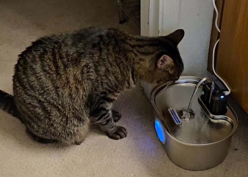 Crafted from 18/8 stainless steel, this 3.2L smart fountain offers quiet operation, triple filtration, and three flow modes. Its cordless dual-power design ensures clean, fresh water anytime, keeping your cat healthy and hydrated.