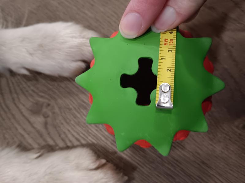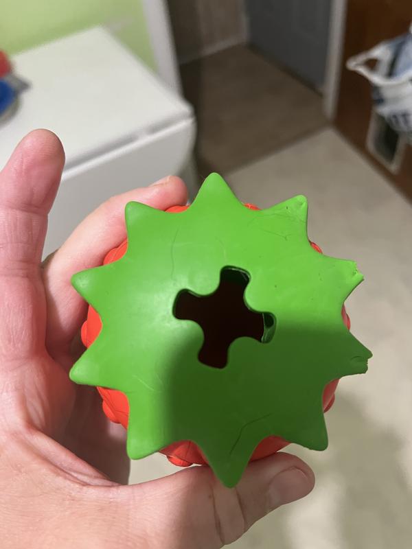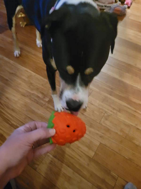 Designed with side holes to hold your pup’s favorite treats, this toy encourages natural foraging behavior. Keep your dog mentally stimulated and happily entertained with rewarding chew-and-treat play.