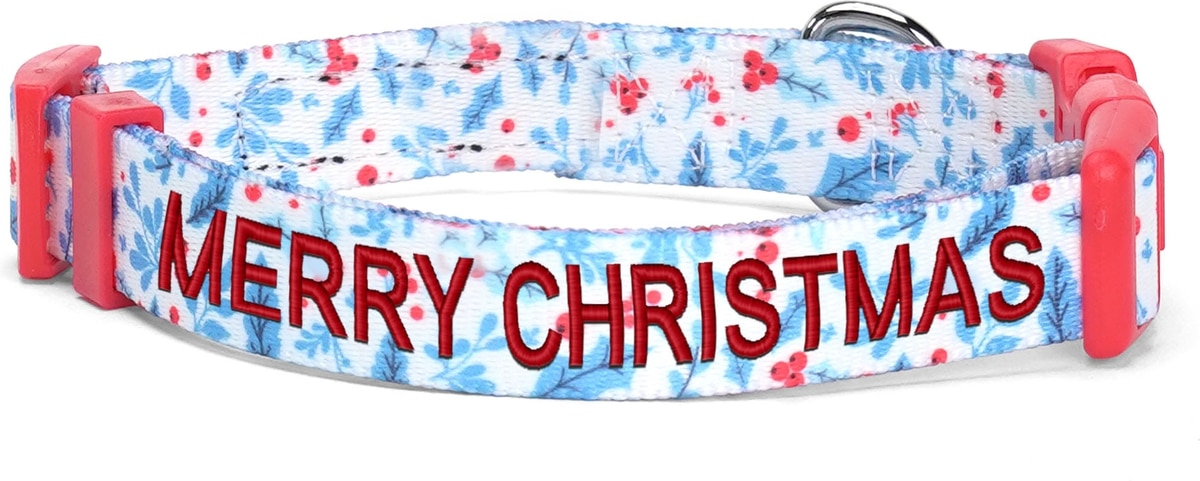 Pawtitas Personalized Christmas Dog Collar, X-Small, Teal Mistletoe