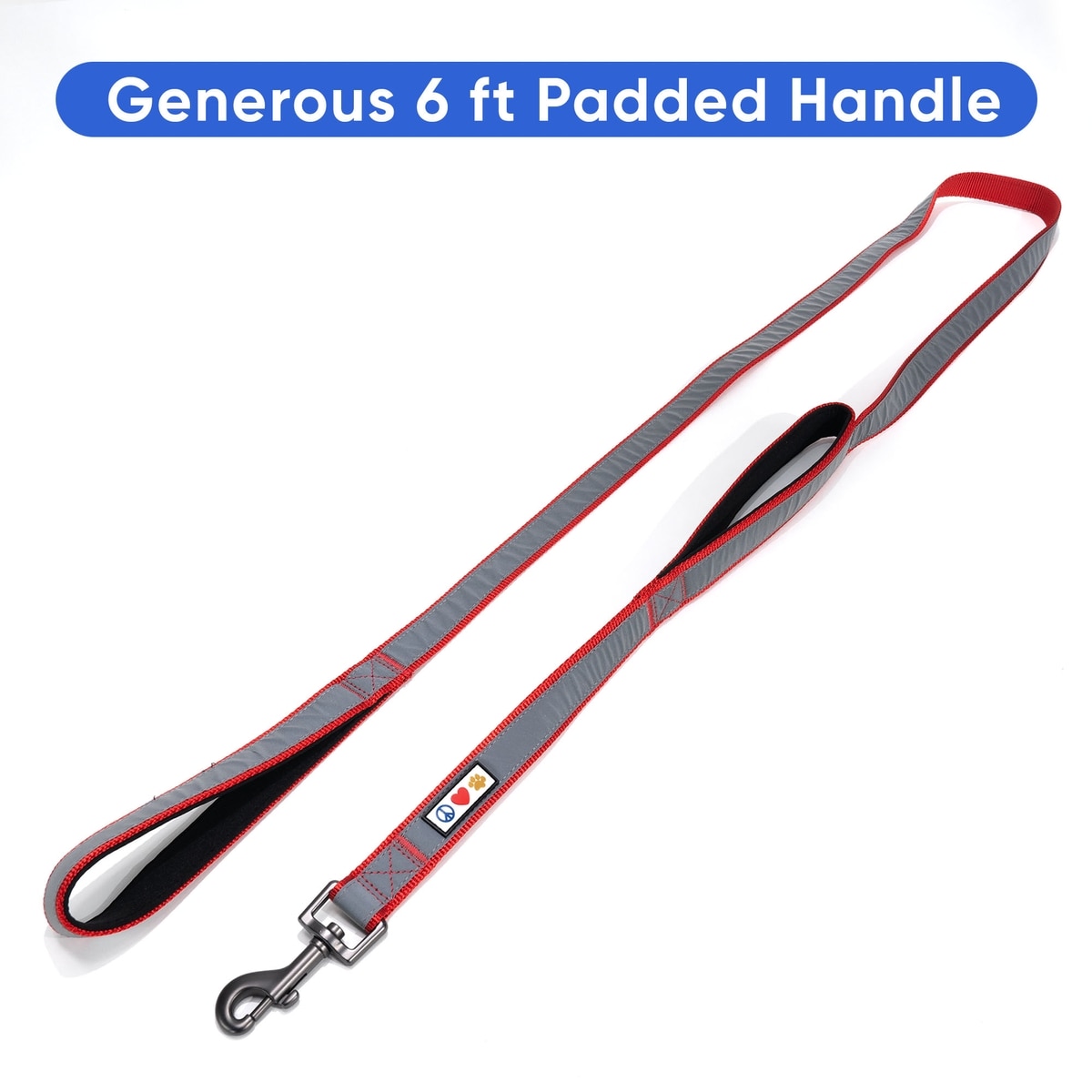 Pawtitas Personalized Reflective Dual Handle Dog Leash, Red