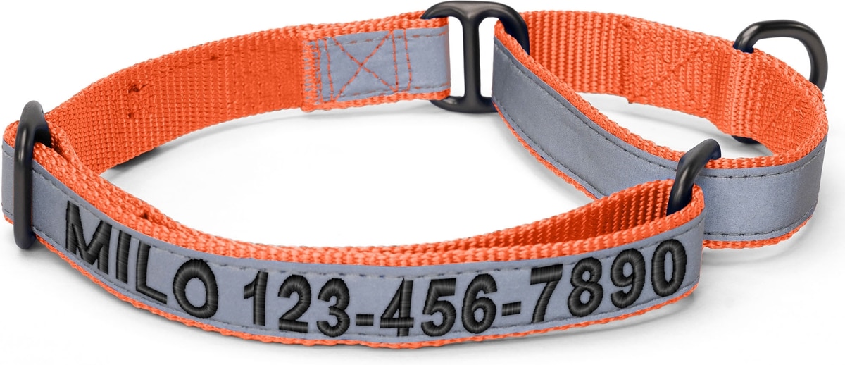 Pawtitas Personalized Reflective Martingale Dog Collar, Orange, Large: 16 to 26-in neck, 1-in wide