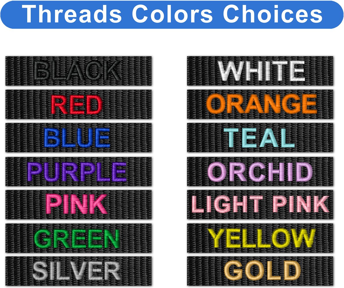 - Keep your pup identified and safe with personalized embroidery, monogrammed with your furbaby’s name and your phone number.