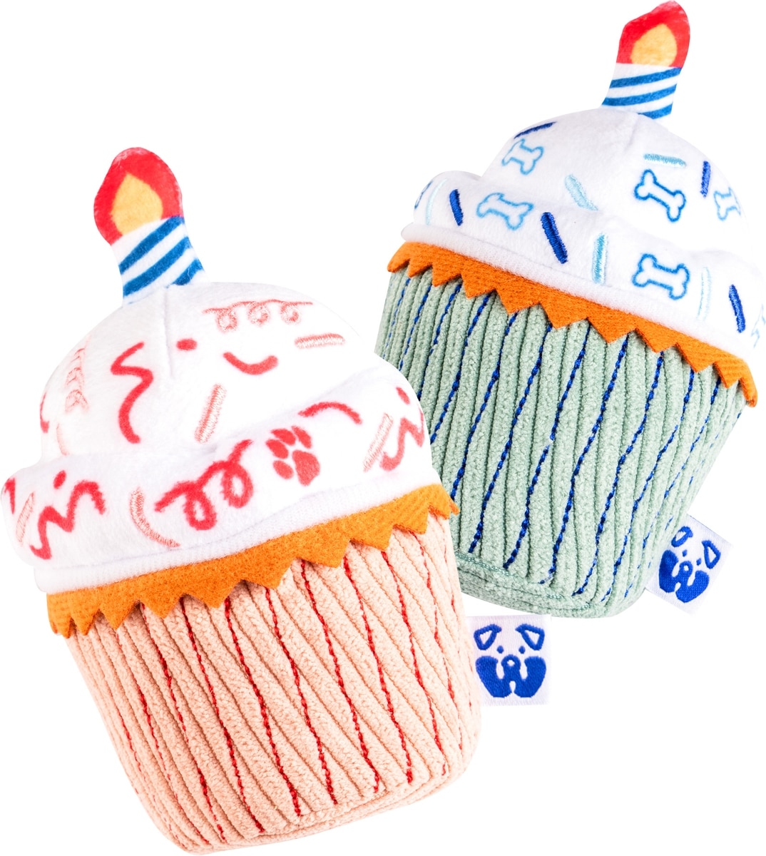 PAWTY TOYS Birthday Cupcake Tug Rope Plush & Squeaky Dog Toy, White/Blue